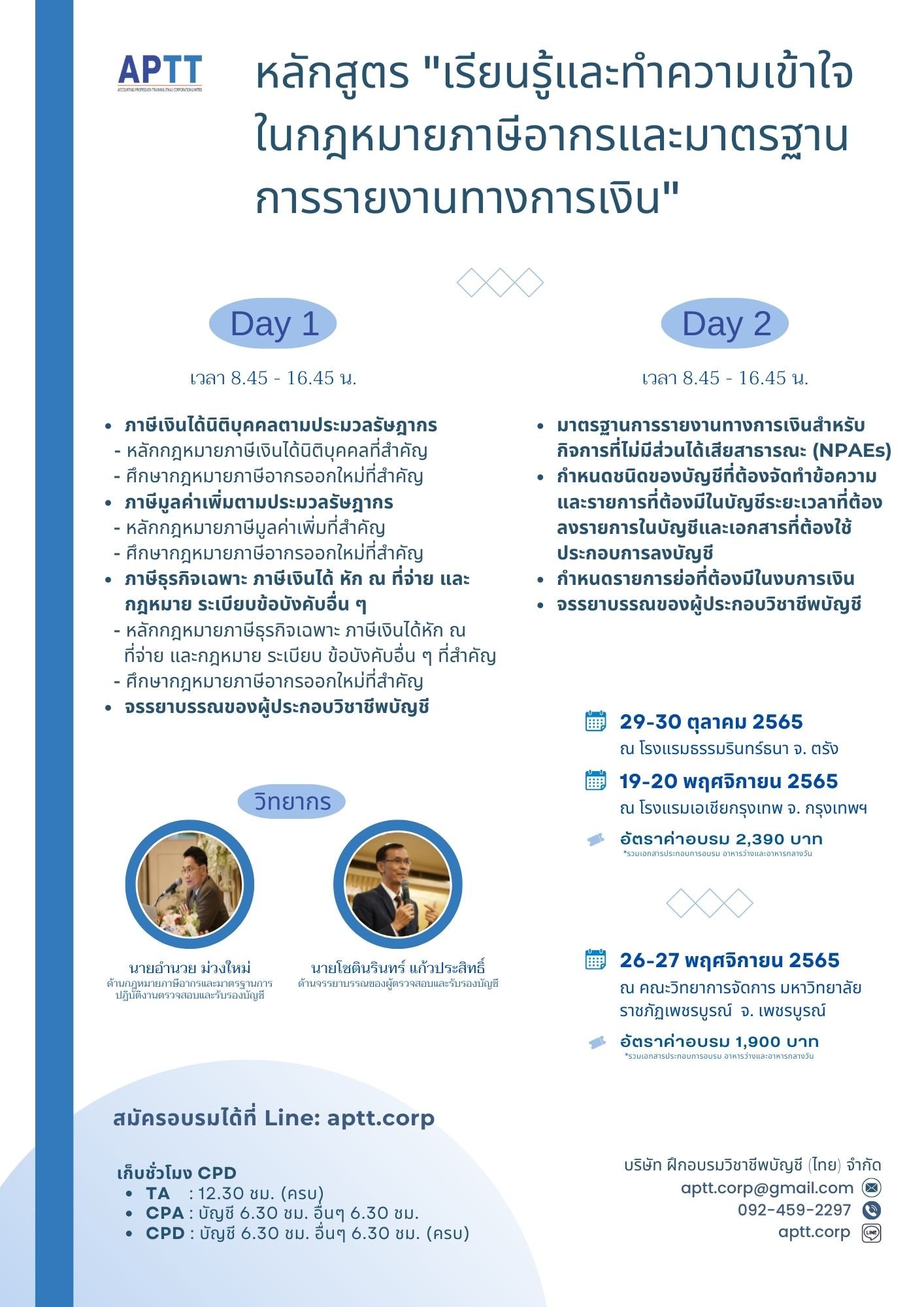 ใบสมัครอบรม: หลักสูตร"เรียนรู้และทำความเข้าใจในกฎหมายภาษีอากรและมาตรฐานการรายงานทางการเงิน" (รุ่นที่ 4)